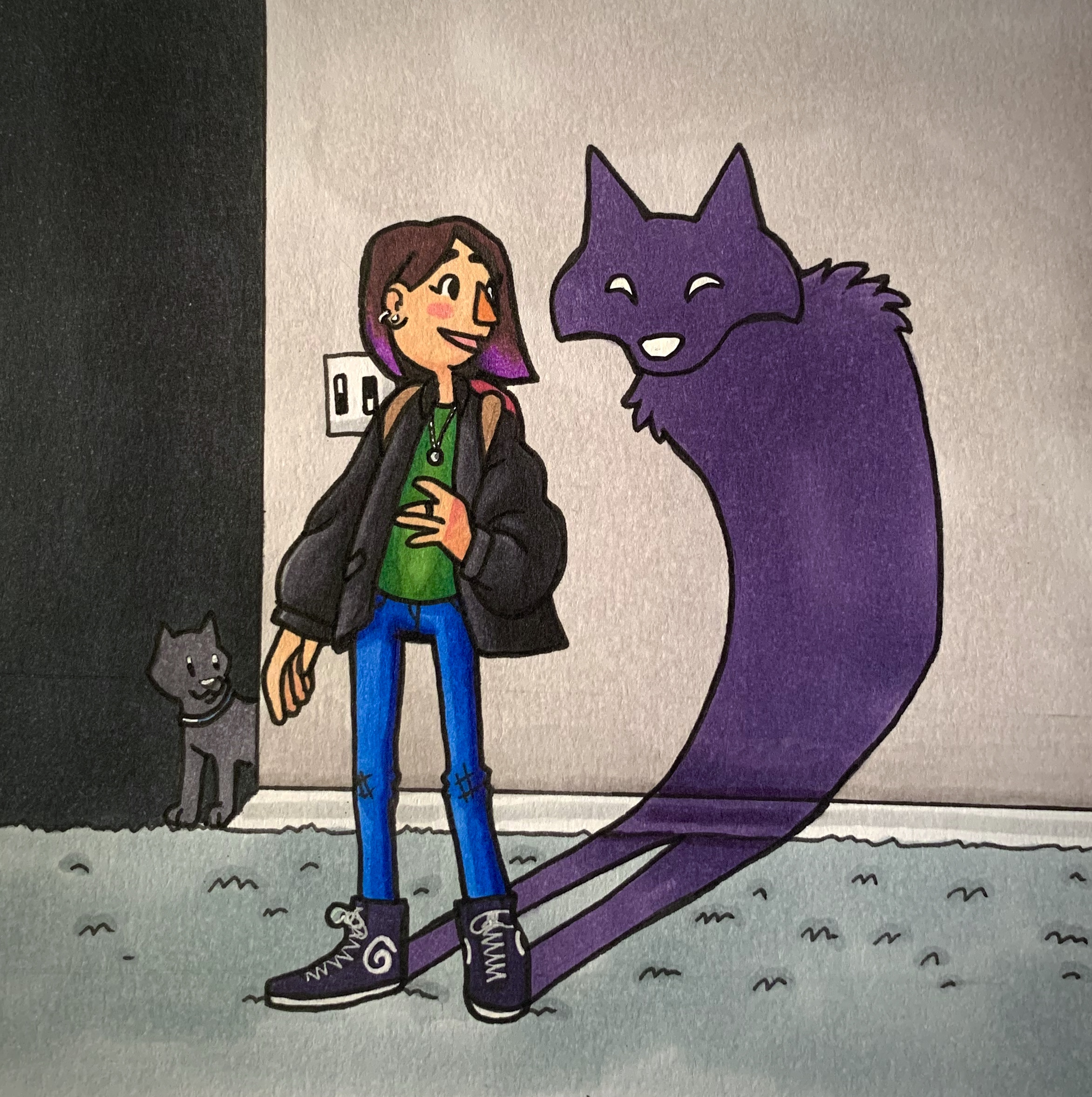 Bailey Drenik, Imaginary Friend Published August 20, 2020 at 2345 × 2355 in Gallery Room 3: “Only Zombies Race to Mass Extinction!” Artist: Bailey Drenik Size: 5.5″ x 5.5′ Medium: Markers Date: 7/23/2020 Title: “Imaginary Friend” Retail value: NFS
