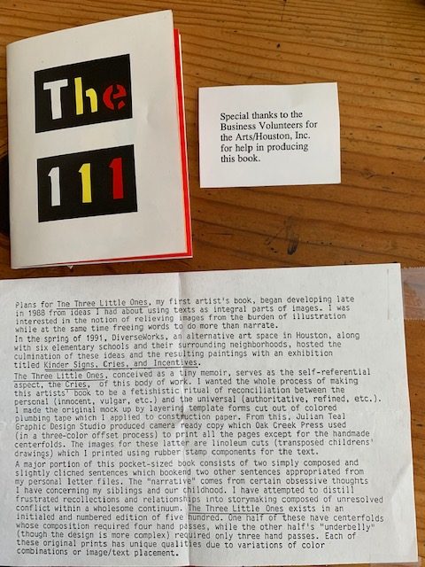 Josefa Vaughan, The Three Little Ones Published October 1, 2020 at 480 × 640 in Gallery Room 3: “Only Zombies Race to Mass Extinction!” Artist: Josefa Vaughan Size: 17.5″ x 22.25″ Medium: Offset litho print Artist’s book layout Date: 1991 Title: “The Three Little Ones” Retail value: NFS
