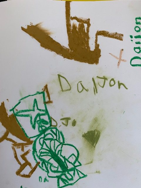 Daijon A. (8), Page from My Journal Published September 2, 2020 at 480 × 640 in Gallery Room 4: Afterschool Lessons and Artist Trading Cards Artist: Daijon A. (8) Size: 11″ x 8.5″ Medium: Oil pastels Date: 2020 Title: Page from My Journal Retail value: Inquire
