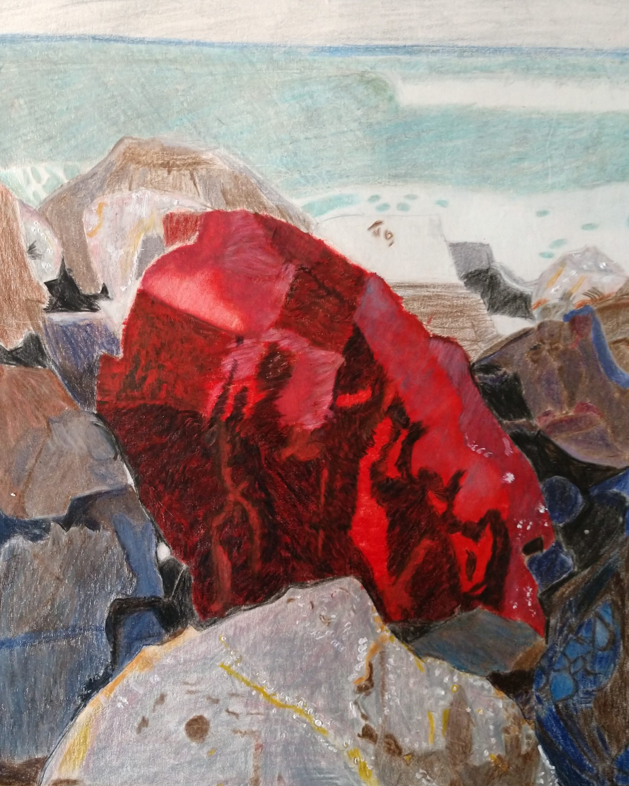 Patricia Aveni, The Rocks Published August 19, 2020 at 2048 × 2560 in Gallery Room 5: Featured Artists’ Works – Michelle Vignes and More! Artist: Patricia Aveni Size: 8″ x 9.5″ Medium: Watercolor pencil and paint on paper Date: 2019 Title: The Rocks Retail value: NFS