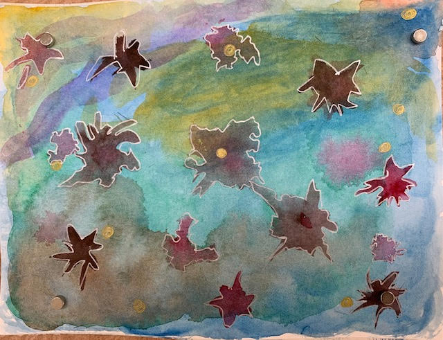 Sabine Gysens, COVID Doodle #3 Published November 24, 2021 at 640 × 491 in Gallery Room 2: 2021 “New Normal: Learning From the Past to Move Forward Together” Artist: Sabine Gysens Size: 6 x 8″ Medium: Watercolor and Gel Pen Date: April 26 2020 Title: Virus Series #1 Retail value: $75